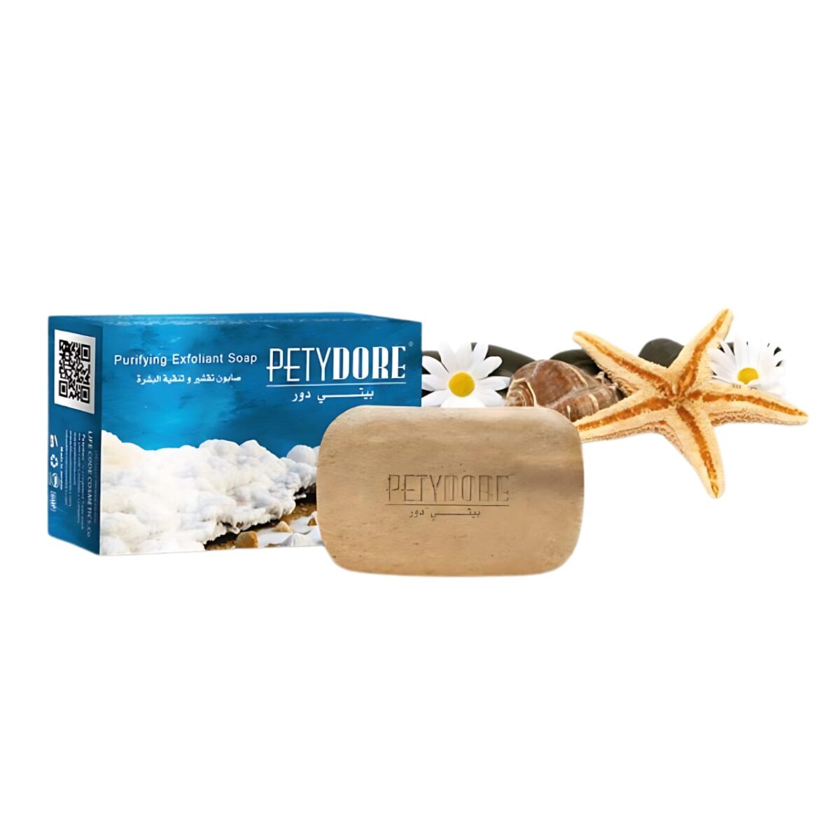 في اعماق البحر الميت حيث بلغ منسوب شاطئه 400 م تحت مستوى سطح البحر تكونت عبر السنين املاح ومعادن البحر الميت صابون بيتي دور لتقشير وتنقيه البشره هو مزيج من الزيوت النباتيه الطبيعيه وحبيبات قشور الجوز اللطيفه لتعمل على تنظيف المسامات بعمق ويزود البشره بالعناصر الضروريه التي تعمل على ازاله الشوائب المتراكمه وخلايا الجلد الميته كما يعمل على توازن الرطوبه وتنقيه البشره تاركا البشره نشيطه وبراقه ويترك بشرتك تتنفس الصحه